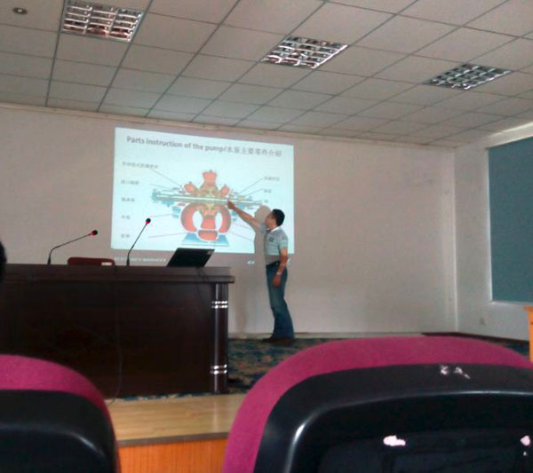 培訓(xùn)過程中不斷有人員向講師提問,講師也熱情地一一講解,整個(gè)培訓(xùn)過程井然有序,實(shí)用效果明顯,使我們對格蘭富的水泵有了更深刻的認(rèn)識(shí),同時(shí)對以后的維修維護(hù)也起到了良好的理論指導(dǎo)。