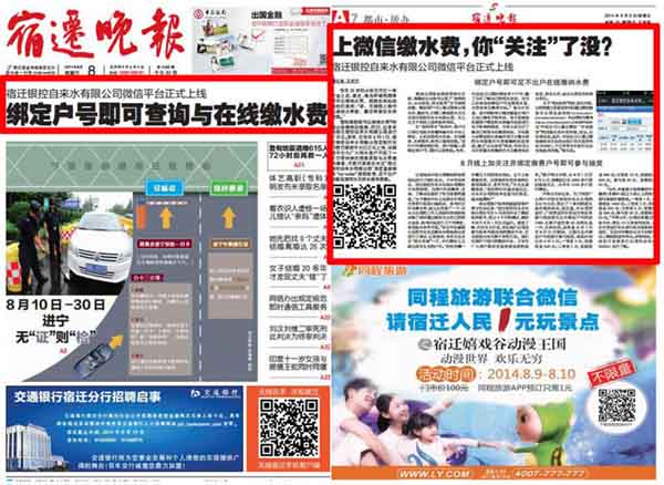 該公司客戶服務(wù)副總經(jīng)理尹邦交告訴記者:“宿遷銀控自來水有限公司在今年5月成功申請(qǐng)了微信服務(wù)賬號(hào),經(jīng)過3個(gè)月的調(diào)試,微信平臺(tái)于