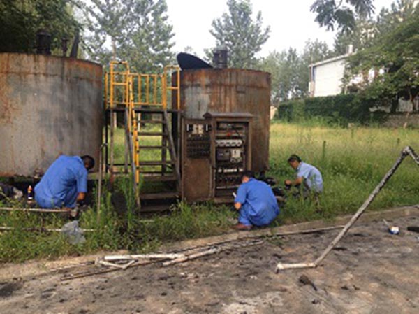 為了節(jié)約成本,由機電設備部負責把駱馬湖淘汰下來的活性炭投加設備組加裝在運河泵站。在顧經(jīng)理的帶領下,維修人員加班加點對現(xiàn)場的設備進行了設備布局,包括儲罐的定位、泵組的連接、管線的需求、協(xié)調(diào)材料、管線安裝等,在全員的通力合作下,順利完成了活性炭投加設備的管線的安裝工作。