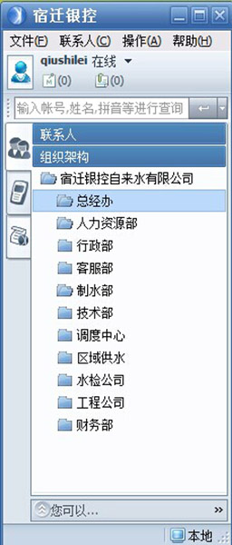 可見騰訊通的功能很多,但是我們需要用的最主要的功能就是即時通訊,大文件傳輸還有系統(tǒng)消息群發(fā)。而它還有一個特點就是根據(jù)企業(yè)自身的組織架構(gòu)形成單獨(或者是集團分公司之間的)通信系統(tǒng)。我模擬部署了一個,圖1就是一個基本的界面。