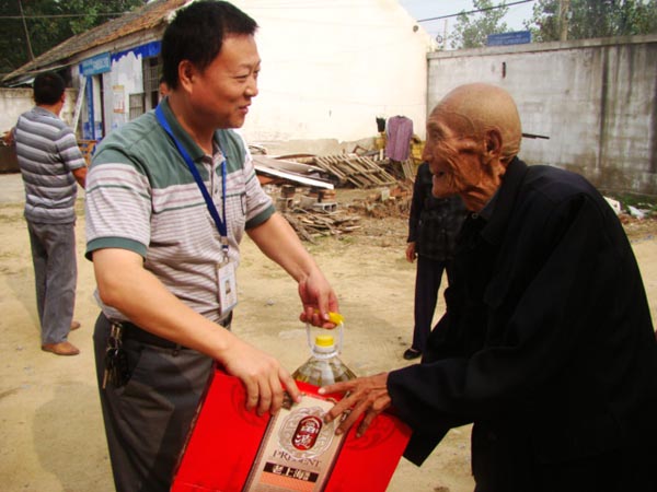 (圖:陳總代表公司向村民送上節(jié)日祝福)