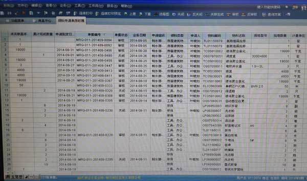下圖為我個人調(diào)整后的系統(tǒng)目視截圖,較為直觀,不用向后拖就能直接看到需求的物料名稱、數(shù)量、規(guī)格和完成情況等。