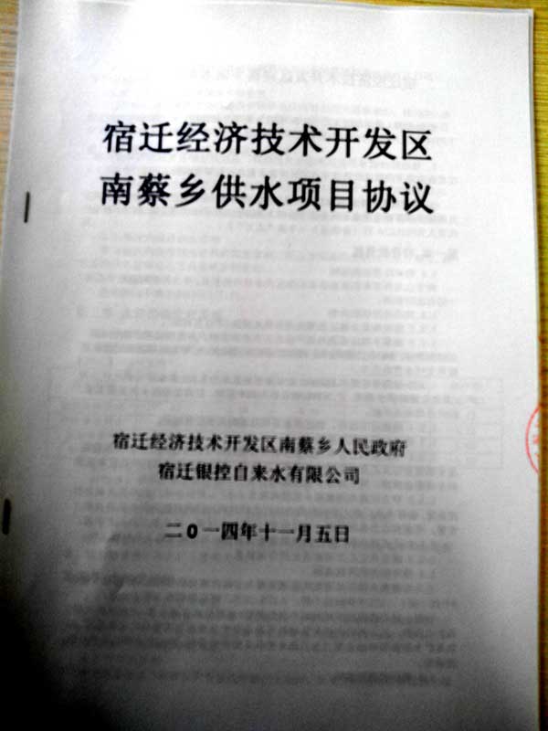 作為2014年市政府為民辦實(shí)事項(xiàng)目之一的區(qū)域供水工程,前期在市統(tǒng)一部署之下,經(jīng)過(guò)緊張的管道安裝施工,克服了種種困難,在多方努力配合下,已于11月5日與南蔡鄉(xiāng)簽訂《經(jīng)濟(jì)開(kāi)發(fā)區(qū)南蔡鄉(xiāng)供水項(xiàng)目協(xié)議》。這標(biāo)志著宿遷公司在區(qū)域供水領(lǐng)域,邁出堅(jiān)實(shí)的一步,為后期其他幾個(gè)鄉(xiāng)鎮(zhèn)的區(qū)域供水打下基礎(chǔ)。