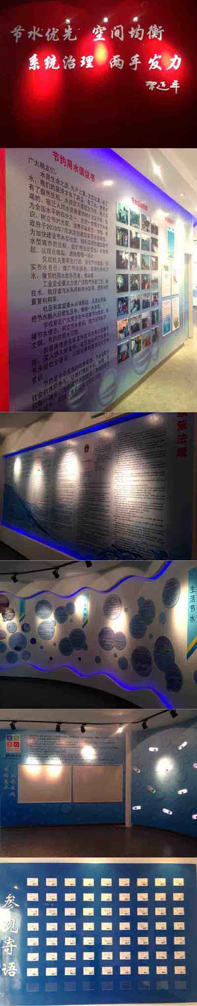 為配合省節(jié)水教育基地申報工作,宿遷公司對“節(jié)水”展區(qū)進(jìn)行了大規(guī)模的整改。首先,原服務(wù)熱線模塊變更為習(xí)主席提出的16字治水方針。其次,“中國自來水之最”和“變革之路”相應(yīng)變更為“節(jié)水倡議書及節(jié)水活動掠影”和“政策法規(guī)”。最后,將原有“節(jié)水小常識”板塊進(jìn)一步細(xì)分為“生活節(jié)水小常識”、“工業(yè)節(jié)水技術(shù)”以及“節(jié)水器具的使用和水表認(rèn)知”三部分。除此,又因地制宜的增加了附有《都柏林宣言》的節(jié)水簽名墻,呼吁公眾關(guān)注水資源,倡議群眾節(jié)約用水,提高節(jié)水意識。同時,在原先“電子留言板”之后還新增了“參觀寄語”供羅列展現(xiàn)從歷次參觀留言中摘選出來的對于宿遷水事業(yè)的發(fā)展給予肯定或建設(shè)性意見的參觀者留言。