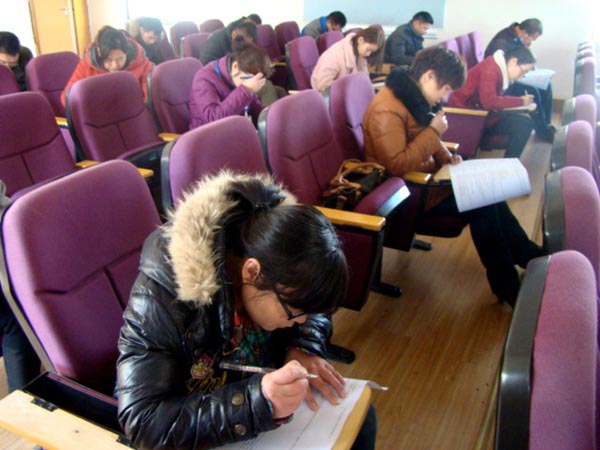 在考試現(xiàn)場,大家自覺遵守考試紀律、認真作答。通過這次測評,公司員工的業(yè)務(wù)水平、專業(yè)技能、服務(wù)質(zhì)量會有較大改變,將進一步提升服務(wù)質(zhì)量。