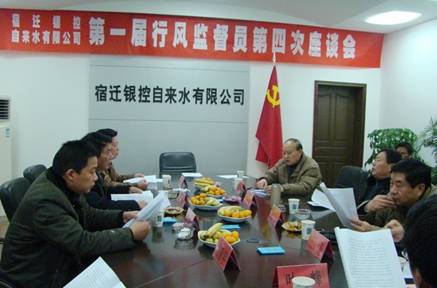12月16日,宿遷銀控自來水有限公司召開第一屆第四次行風(fēng)監(jiān)督員座談會。行風(fēng)監(jiān)督員們在聽取了夏承光總經(jīng)理行風(fēng)建設(shè)工作的報(bào)告之后,就如何進(jìn)一步加強(qiáng)行風(fēng)建設(shè)工作提出意見和建議:一是要持之以恒做好供水服務(wù)工作,保證水質(zhì)安全。二是要加大宣傳力度,尤其是要做好輿論宣傳,讓社會各界通過宣傳了解和支持自來水事業(yè)。三是要做好用水企業(yè)的供水服務(wù)工作,加強(qiáng)協(xié)調(diào)和溝通。