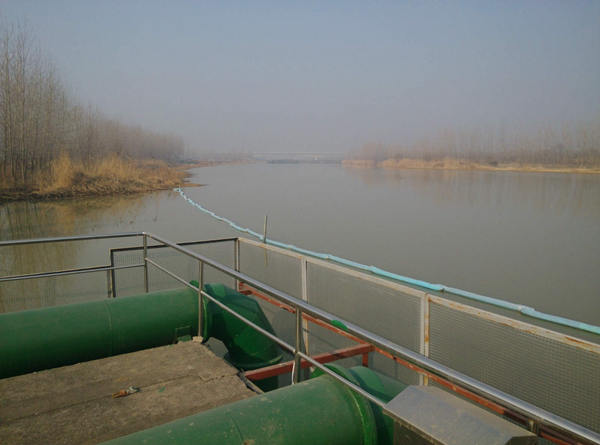運(yùn)河泵站始建于1983年,歷經(jīng)3次改擴(kuò)建后,目前取水能力8萬噸/天。泵站裝機(jī)4臺(tái),3用1備,單臺(tái)機(jī)組額定功率132kw,額定流量1100m3/h,總裝機(jī)容量為640kw,通過2條DN800和1條DN500管道向一水廠輸送原水,管線單程1900米。2009年中心城區(qū)啟用駱馬湖水源地后,中運(yùn)河泵站即作為備用水源地。由于建設(shè)年代較長,啟用頻率較低,站內(nèi)設(shè)施和環(huán)境相對較差,尤其是取水口的兩邊,因運(yùn)河泥沙較多,加之水流方向受到駱馬湖排水和南水北調(diào)的影響經(jīng)常出現(xiàn)變化,造成取水頭部淤積了大量的泥沙,對取水水質(zhì)和泵站環(huán)境造成了較大的影響。