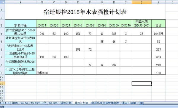 根據(jù)部門目標(biāo),水表檢定中心在2015年1月份制定了市區(qū)水表強(qiáng)檢計(jì)劃。目前,計(jì)劃已全面完成并通過審核。