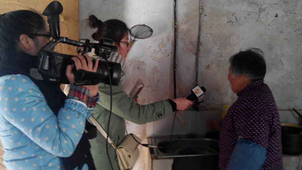 (圖:記者入戶采訪正在使用銀控自來(lái)水的農(nóng)戶)