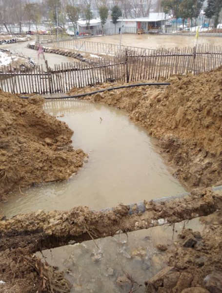 1月29日,上班的鈴聲還未響起,管網(wǎng)部所有維修人員都已整裝待發(fā),聽候調(diào)配。聽著熱烈異常且嚴(yán)肅地討論聲,才知道1月28日晚,因原水管道水流量突發(fā)異常現(xiàn)象,丁經(jīng)理等一行人巡查管線至29日凌晨近3點(diǎn),終于在雪峰公園東門附近發(fā)現(xiàn)漏點(diǎn),此刻正在商討搶修計(jì)劃。