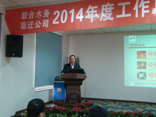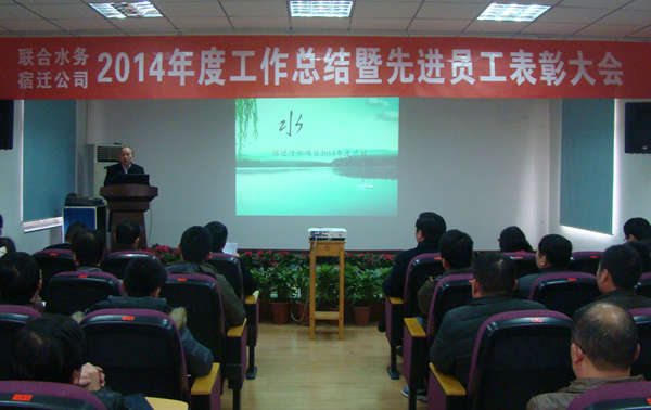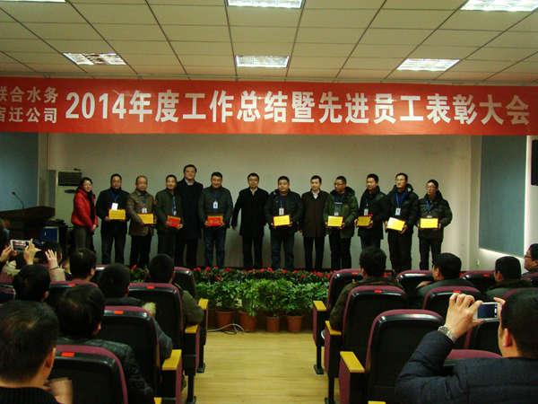 2015年2月3日,聯(lián)合水務(wù)集團宿遷公司召開2014年度年終總結(jié)暨表彰大會。大會在宿遷公司三樓會議室舉行,共有集團領(lǐng)導(dǎo)、宿遷公司主管以上人員及員工代表68人參加,集團副總裁劉猛先生、陳樵先生,人事行政總監(jiān)楊麗霞女士,生產(chǎn)運營總監(jiān)王歡總監(jiān)也在百忙之中參加此次會議。