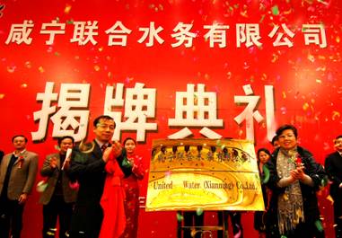 典禮由咸寧市政府副秘書長雷宏斌主持,聯(lián)合水務(wù)總裁俞偉景與咸寧市副市長王漢橋分別致辭。俞偉景總裁在致辭中說,自聯(lián)合水務(wù)投資2.8億元以TOT方式取得咸寧市區(qū)30年供水特許經(jīng)營權(quán)以來,經(jīng)過新公司設(shè)立、清產(chǎn)核資、員工安置等一系列工作,咸寧聯(lián)合水務(wù)有限公司正式成立了。它的成立,使咸寧市的供水進(jìn)入可持續(xù)發(fā)展的良性軌道,為促進(jìn)咸寧供水事業(yè)的跨越式發(fā)展打下了良好的基礎(chǔ),是咸寧市委、市政府一項服務(wù)于民,造福于民的民生工程。新公司將不斷提高供水質(zhì)量和服務(wù)水平,為咸寧經(jīng)濟(jì)社會的和諧發(fā)展做貢獻(xiàn)。