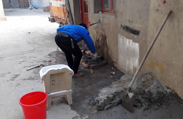 事件二:工程公司樓前的盥洗槽由于根基凍酥坍塌,又是他帶人進行了整修。
