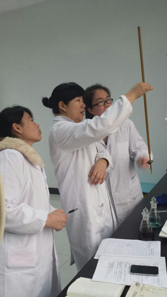 2015年3月中旬,新絳縣晉華生態(tài)環(huán)境有限公司同仁赴我公司化驗室交流學(xué)習(xí),化驗室全體員工與來訪同仁們作廣泛且深入的交流。通過交流,來訪同仁已經(jīng)能夠完成日檢常規(guī)項目以及總磷、總氮等項目的檢測,并且深入學(xué)習(xí)了所需試劑的配比。