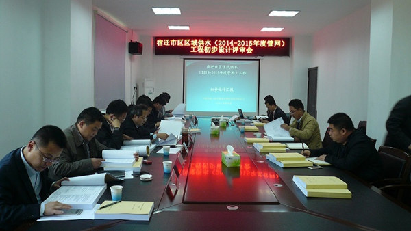 2015年4月20日下午,宿遷市區(qū)區(qū)域供水(2014-2015年度管網(wǎng))工程初步設計評審會在宿遷市第二水廠二樓會議室召開,參加會議的領導及專家有宿遷市建設局副局長林國峰、泛華設計院總工程師劉京、南京市政設計院楊紅偉、宿遷市發(fā)改委投資處處長徐華強等人。