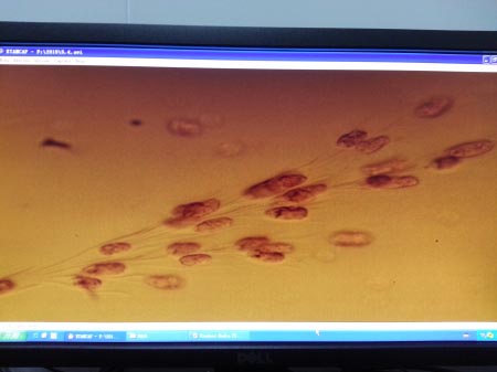 近幾日水檢公司在檢測藻類的時候,發(fā)現(xiàn)駱馬湖原水中檢測到新的藻類。經(jīng)過幾日的跟蹤檢測,發(fā)現(xiàn)該種藻呈增長趨勢,F(xiàn)階段占總藻類的25%--80%。