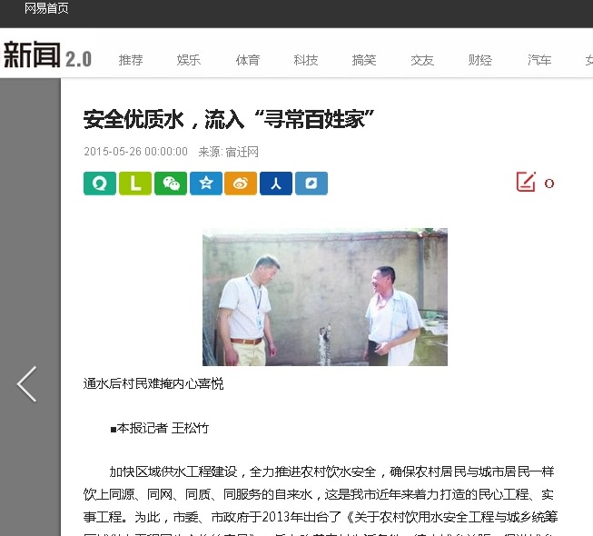 記者了解到,目前,西線的蔡集鎮(zhèn)、王官集鎮(zhèn)已于2015年4月完成鄉(xiāng)鎮(zhèn)供水。此外皂河鎮(zhèn)、埠子鎮(zhèn)、羅圩鄉(xiāng)等鄉(xiāng)鎮(zhèn)主管網(wǎng)已鋪設(shè)到鄉(xiāng)鎮(zhèn),具備通水條件,但由于鄉(xiāng)鎮(zhèn)小水廠的一些問題尚未解決,形成區(qū)域供水全線暢通的阻力,導(dǎo)致主管網(wǎng)無法與鄉(xiāng)鎮(zhèn)管道對接。杜愛軍對此也很無奈,他說:區(qū)域供水是市委市政府的民生工程,高投入,無產(chǎn)出,宿遷銀控自來水有限公司的母公司---聯(lián)合水務(wù)集團(tuán)高度重視,并為此投入巨額資金推進(jìn)區(qū)域供水工作,但因鄉(xiāng)鎮(zhèn)小水廠問題,水都送到鄉(xiāng)鎮(zhèn)門口了,老百姓卻無法飲用優(yōu)質(zhì)自來水。因此,有些鄉(xiāng)鎮(zhèn)居民紛紛通過網(wǎng)絡(luò)發(fā)帖,電話投訴等方式表達(dá)自己的用水訴求。最后,杜愛軍也呼吁相關(guān)部門能高度重視,協(xié)調(diào)相關(guān)方面推進(jìn)小水廠等問題的解決,讓鄉(xiāng)鎮(zhèn)居民早日用上優(yōu)質(zhì)自來水。