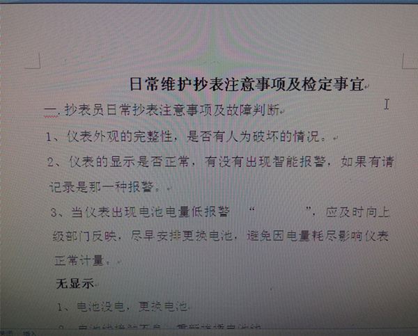 網(wǎng)絡(luò)培訓(xùn)由電磁水表合格供應(yīng)商提供技術(shù)資料,根據(jù)供應(yīng)商提供相關(guān)資料對(duì)進(jìn)行公司使用的電磁水表進(jìn)行分析和比對(duì),通過比對(duì),水表檢提高了電磁水表問題判斷和分析能力。掌握了電磁水表日常維護(hù)注意事項(xiàng)。整理出《電磁水表日常維護(hù)、檢定、拆表注意事項(xiàng)》,根據(jù)培訓(xùn)目的,水表檢定中心及時(shí)把培訓(xùn)結(jié)果通知到客戶部及相關(guān)領(lǐng)導(dǎo)。