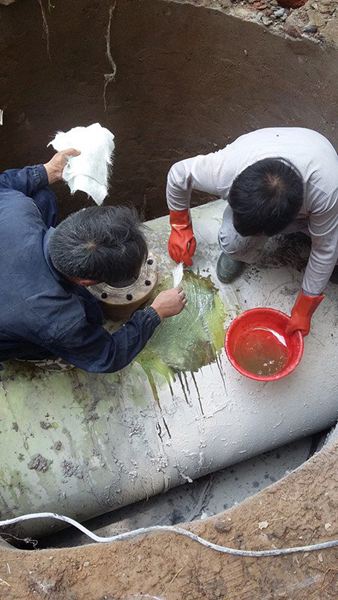 6月10日12時(shí)左右,歷時(shí)5小時(shí),由維修員李鵬、韓江負(fù)責(zé)停水等工作的兩處管側(cè)漏水順利搶修完畢。另一處管底漏水,因管線長(zhǎng)、管底深、余水大,搶修難度大且因漏水方位原因必須帶水搶修。因周邊樹(shù)木較多,大發(fā)電機(jī)無(wú)法進(jìn)入,為了將管底余水排出,只能使用四臺(tái)小水泵進(jìn)行抽水,挖機(jī)同時(shí)向外挖水,從10日16時(shí)開(kāi)始,維修員奮戰(zhàn)近2天一夜,于11日23時(shí)30分左右終于將此漏點(diǎn)搶修完畢。