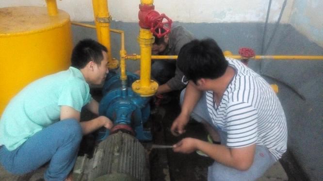 (圖:維修人員正在安裝2#水環(huán)式真空泵)