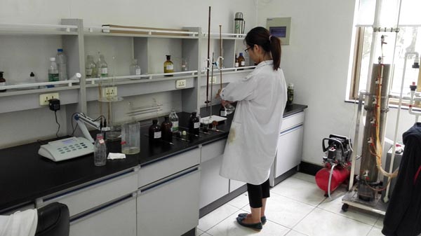 (圖7:水質(zhì)檢測員專注做試驗背影)