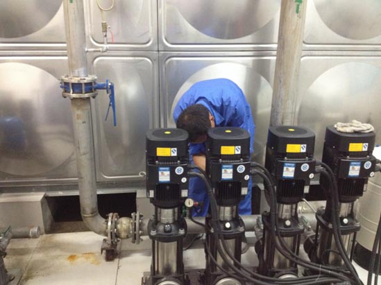 (圖為二次供水加壓系統(tǒng)巡檢人員對(duì)設(shè)備進(jìn)行日常巡檢)