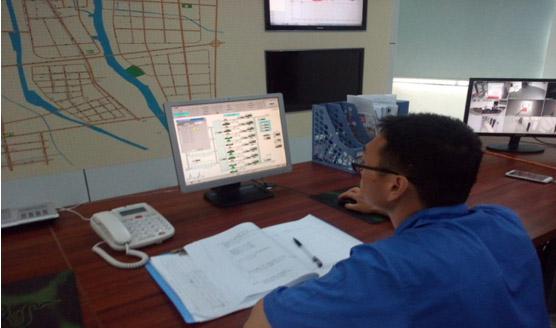 (圖為調(diào)度人員進(jìn)行供水調(diào)度)