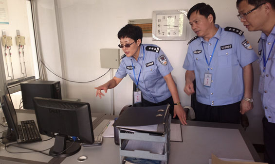(圖2:市公安局副局長李笑梅(女)檢查公司監(jiān)控系統(tǒng))