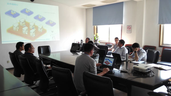 (圖:總部領(lǐng)導(dǎo)與技術(shù)人員在討論方案)