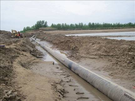 恰逢古黃河改造,正是二水廠過黃河給水管道沉管工程施工的好時機,工程公司作為承包方負責(zé)此項工作 ,根據(jù)施工點的地形地貌,制定了多種施工方案,擇優(yōu)選用。此次過黃河管道口徑為DN1000,長度共144米,負責(zé)二水廠通往蘇州工業(yè)園區(qū)等范圍的供水的任務(wù)。