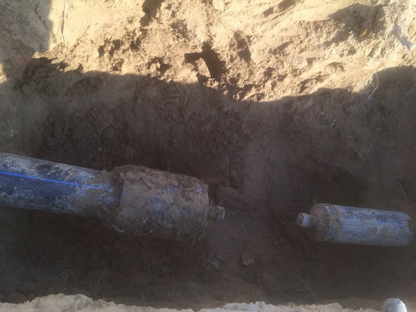 當(dāng)天室外溫度達(dá)到零下5度,工作人員冒著嚴(yán)寒經(jīng)過現(xiàn)場勘查,制定施工預(yù)案,準(zhǔn)備工具、材料,于12月17日上午開始開挖施工,經(jīng)過近8個小時的緊張施工,在17:30將截斷點重新對接,隨后關(guān)閥抽桿,待公司下達(dá)供水指令后,隨時供水。