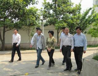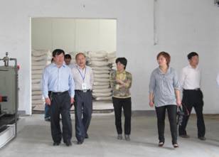 圖二、夏總陪同專家組參觀生產(chǎn)區(qū)