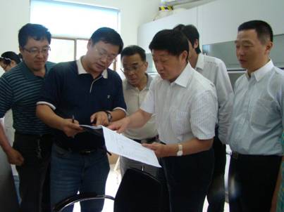 圖2:領(lǐng)導(dǎo)專家們認(rèn)真查看水質(zhì)檢測數(shù)據(jù)報表