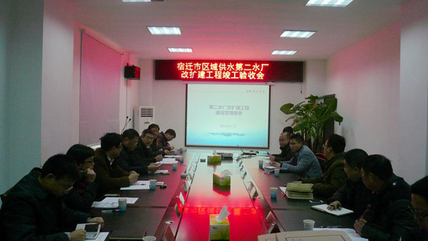 于2016年1月31日,由宿遷市水務(wù)局組織,在宿遷市第二水廠二樓會(huì)議室召開(kāi)本項(xiàng)目竣工驗(yàn)收會(huì)。參加驗(yàn)收會(huì)的單位有:宿遷市發(fā)改委、宿遷市財(cái)政局、宿遷市規(guī)劃局,宿城區(qū)水務(wù)局及參加項(xiàng)目建設(shè)的監(jiān)理單位、設(shè)計(jì)單位、地勘單位、施工單位等。
