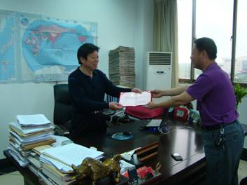 圖片說明:公司副總經(jīng)理陳少軍(右)送頒第二屆行風(fēng)監(jiān)督員聘書