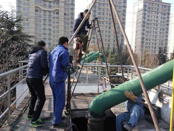 (圖2:維修人員正在對(duì)1.5萬(wàn)噸濾池進(jìn)行搶修)