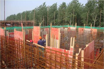 二水廠在過去的一個(gè)多月中,基本完成了底板、基礎(chǔ)承臺(tái)、基礎(chǔ)梁柱的施工,目前開始進(jìn)入關(guān)鍵的上部工程。