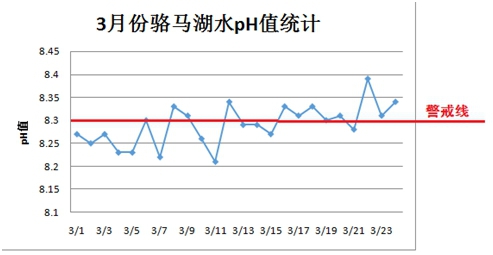 進(jìn)入3月份以來(lái),駱馬湖水源地pH值異常頻率逐漸增加。