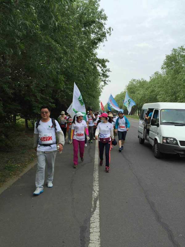 7:00整我跟著浩浩蕩蕩的徒步隊(duì)伍準(zhǔn)時(shí)出發(fā)了。因?yàn)槠饺绽镂揖蛺酆猛讲,?duì)此次的環(huán)湖,我還不是很有信心,相信應(yīng)該能順利到達(dá)終點(diǎn)。與我并行的還有我的一個(gè)好友,一個(gè)同學(xué)。第一個(gè)簽到點(diǎn)我們輕松就到了,下一個(gè)目標(biāo)就是30公里的簽到點(diǎn)。本來出發(fā)時(shí)整齊有序的隊(duì)伍,現(xiàn)在顯得有點(diǎn)零散了,每個(gè)人的體力不一樣,因此無形中拉開了距離。30公里簽到后,已經(jīng)有部分“驢友”坐上保障車了,看來他們已經(jīng)與獎(jiǎng)牌無緣了。45公里、55公里一一拿下后,我絲毫沒有累的感覺,這應(yīng)該與我平時(shí)經(jīng)常鍛煉有關(guān)吧!身邊的朋友已經(jīng)累得不行了,但是他依然堅(jiān)持,哪怕是腳上磨了幾個(gè)水泡。雖然他的體力不如我,但是他的堅(jiān)韌不拔,敢于吃苦的精神讓我敬佩著。隨后,我們到達(dá)了窯灣,停頓修整就餐后入住下來。