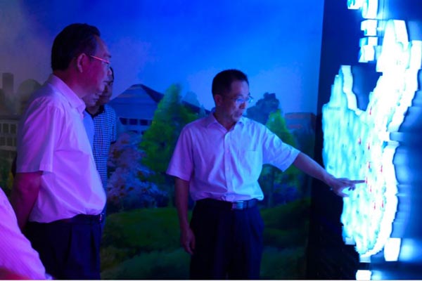 (圖2:曾總向調(diào)研領(lǐng)導(dǎo)介紹聯(lián)合水務(wù)集團在全國項目)