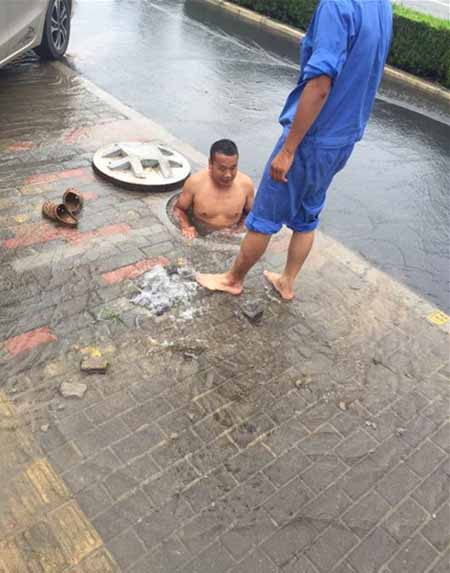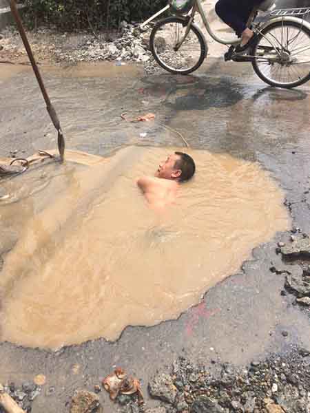 7月27日,37度的高溫天氣,維修人員在接到馬陵路DN300管道爆裂的報(bào)修后,立即趕赴維修現(xiàn)場(chǎng)進(jìn)行維修。維修員根據(jù)經(jīng)驗(yàn)挖出管道后發(fā)現(xiàn)泥水已灌滿操作坑,導(dǎo)致漏點(diǎn)、漏水量不明確。施工人不顧水渾,脫掉外衣跳進(jìn)操作坑,在污水中判斷漏點(diǎn)、漏水量等情況,以便進(jìn)行下一步維修。