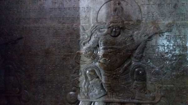 進入第二道石門,也是一樣的精美石雕,有四大天王神像、有寶瓶寶籃(里面有鮮花、有果蔬等等)、沒雕刻的地方全是滿文,我們都看不懂滿文,估計是唱誦乾隆爺?shù)纳绞论E吧。