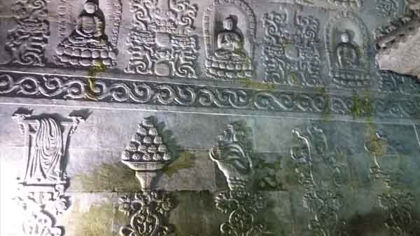 言歸正傳,先到了乾隆墓,外面排場自不用說了,參觀地宮的關(guān)鍵時刻到了,大家隨著導(dǎo)游魚貫而入,剛到門口便是一股陰風(fēng)撲面而來,本來都是滿頭大汗,還真的都給弄一個激靈。地宮共有三道石門,先到了第一道,滿壁的精美石雕真是無以倫比、美輪美奐,全都是佛像,個個神態(tài)逼真。