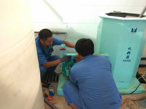 (圖:工作人員正在對(duì)化料泵進(jìn)行改造)