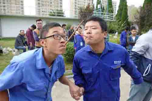 接下來舉行的“鑰匙接力賽”共有13組參賽隊伍,每組5人。比賽規(guī)則為:各組隊員手牽手,每人口中各銜一根筷子,由第一名隊員將鑰匙串放在自己口中的筷子上并傳給下個隊員,依次接力,由最后一名隊員從筷子上直接投入籃中,不間斷重復進行,5分鐘內運送鑰匙最多的隊伍獲勝。游戲期間除第一名隊員,其他人不得用手觸碰筷子和鑰匙串,掉到地上的鑰匙串,不計入成績。該項活動極其考驗參賽者的臨陣不亂的定力,不受他人逗笑,沉穩(wěn)迎戰(zhàn),方可取得好成績。在躍躍欲試中,比賽正式開始。有的人輕松自如,有的人明顯有些慌亂,沒找到正確技巧,參賽隊員不時的“斗雞眼”、“揪嘴巴”等表情包,引得全場爆發(fā)出陣陣歡笑聲。最終,由工程公司喬展等五人組成的工程造價隊力壓群雄,以5分鐘接力41串鑰匙的成績,拔得頭籌。