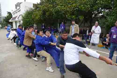 首先,閃亮登場的是男女雙人項目“跳麻袋”。該項活動共有12組參賽隊伍,每組兩名員工配合,同時進入麻袋向終點跳躍,賽程20米,以到終點用時長短來排定名次,用時相同視為并列名次;顒右(guī)則要求身體任何部位不得接觸地面,累計三次犯規(guī),將不計比賽成績。該項活動要求每組參賽的兩個人高度默契,步調一致,才能快速、安全到達終點,取得好成績。從有快有慢到步調一致,從跌倒處迅速爬起再繼續(xù),齊聲喊著“一二一二口號”處處顯示著我們員工之間團結、協(xié)作、堅韌的精神品質……經過激烈角逐,劉猛&陸賽莉組以8秒93的成績獲得一等獎。