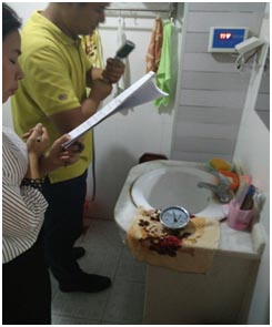 首先,對(duì)問(wèn)題反映較多的16號(hào)樓開(kāi)始,對(duì)室外消火栓進(jìn)行壓力試驗(yàn),水壓顯示完全符合我們對(duì)直供水的要求。隨后我們來(lái)到二樓的一位老奶奶家中進(jìn)行水壓測(cè)試,結(jié)果顯示也有0.26MPa,說(shuō)明該棟樓的壓力符合我們對(duì)普通直供水壓的要求。但是根據(jù)現(xiàn)場(chǎng)居民反映的高峰供水會(huì)出現(xiàn)沒(méi)水情況,我們繼續(xù)排查發(fā)現(xiàn),因?yàn)樾^(qū)建設(shè)初期,小區(qū)自行建設(shè)的直供增壓泵房現(xiàn)在設(shè)施已停止運(yùn)行而且進(jìn)水管徑相對(duì)較小,所以導(dǎo)致高峰用水時(shí)候存在水壓不夠或者沒(méi)水情況。