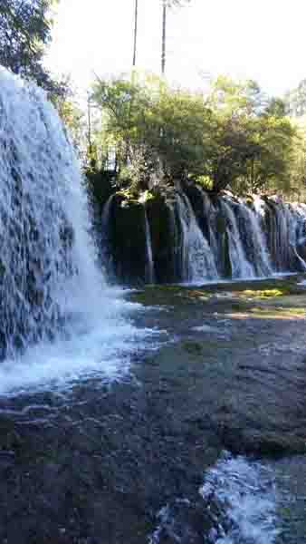 九寨溝的瀑布也很多,其中箭竹海瀑布給我印象比較深,它就像一幅巨大的水簾,落差不大,瀑布濺起來的水花落在我們身上,好像為我們洗去一路的疲勞和塵土,讓我們心曠神怡,神清氣爽。與箭竹海相比,珍珠灘瀑布更顯得氣勢雄偉,瀑布一瀉千里,有點“飛流直下三千尺,疑是銀河落九天”之勢。