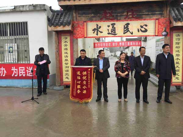 通水儀式上,古楚社區(qū)董主任大力贊揚了銀控公司為三個村通水所做出的貢獻,對自來水公司高質(zhì)量、高標準、高速度地完成工程建設給予了高度的肯定,并向公司贈送了錦旗。