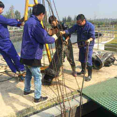 對采用活性污泥法處理污水而言,將污泥外回流至生化池是一項極為重要的工作。其目的是補充生化池活性污泥濃度,使其在一個穩(wěn)定的濃度范圍,保證生化處理的效率。那么外回流污泥泵必然是一個重要的設(shè)備,為了使設(shè)備能夠長期穩(wěn)定的運行,城北廠利用兩天的時間將三臺污泥泵提出水面,進行檢測維護。